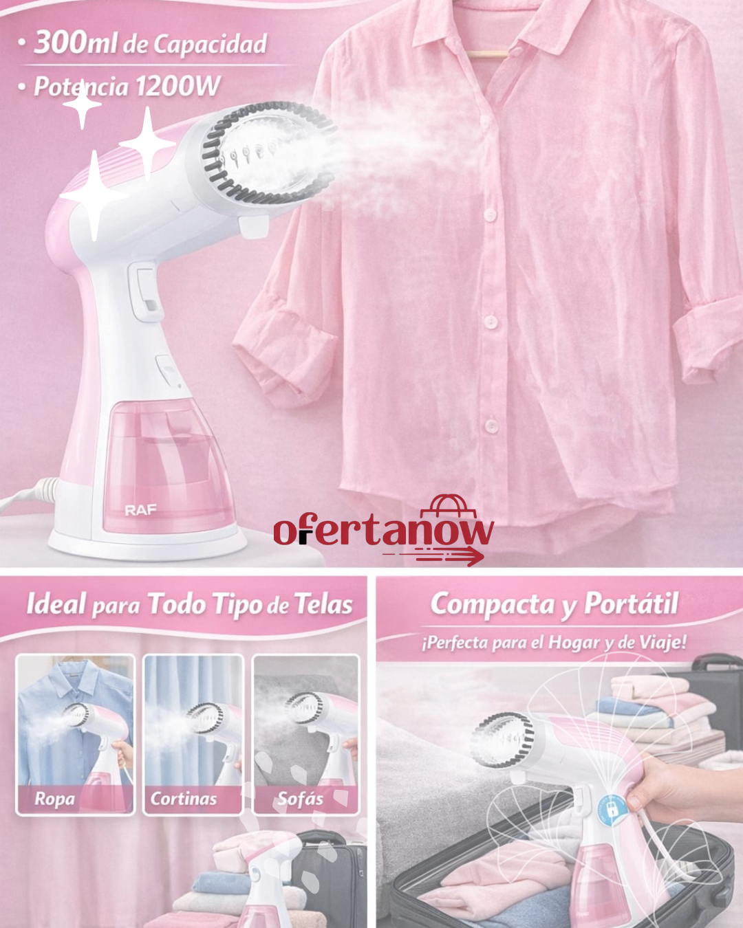 ✨ Alísala en segundos, sin tabla y sin esfuerzo con la Plancha de Vapor Raf de Mano, Ropa impecable donde estés: en casa, en el trabajo o de viaje. Compacta, potente y lista en segundos.